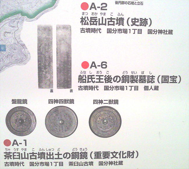 調査で鏡や腕飾り形の宝器が多数出土していて、松岳山古墳に本来納められた副葬品が並みのものでなかったことがしのばれる。