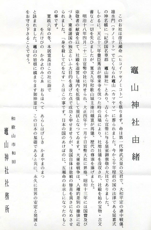 を負いき。故、爾くして詔りて、「吾は日の~の御子にして、日に向いて戰うは良からず。故、賎(いや)しき奴(やっ