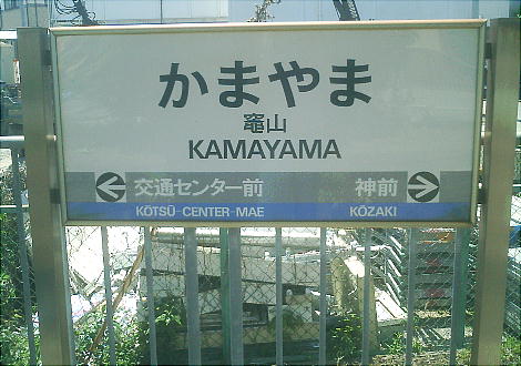 竈山駅は、車道から入ると稲田病院の裏口にあたるところにあり、県道から駅に行くにはこの病院を迂回するように狭い路地を通