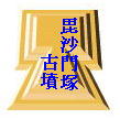 毘沙門塚(びしゃもんづか) 今はもう前方後円墳とはわからないほどに木々が立ちこめている。しかし空からの空撮を見ると、