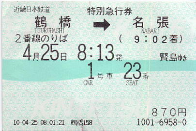 さんの携帯へ遅れると連絡した。身から出たサビとは言え、870円も余計に近鉄に寄付してしまった。クッソー。