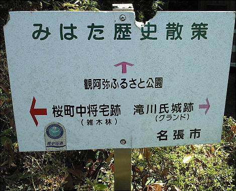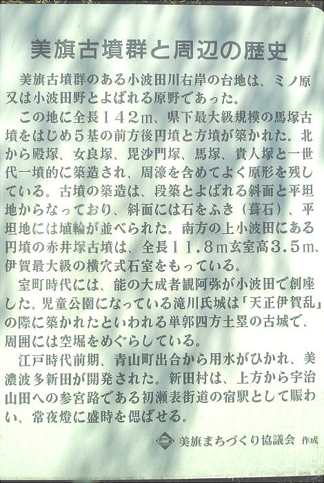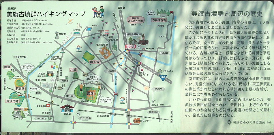 美旗古墳群を説明した大きな看板を見ながら、「観阿弥ふるさと公園」への坂を上ってゆく。