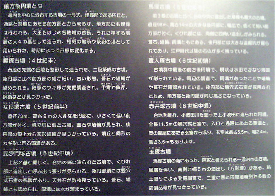 解説が揃っている。古墳の航空写真など、ここへ来て初めてああ、全体はこういう形だったのかというのが判る。そういう意味