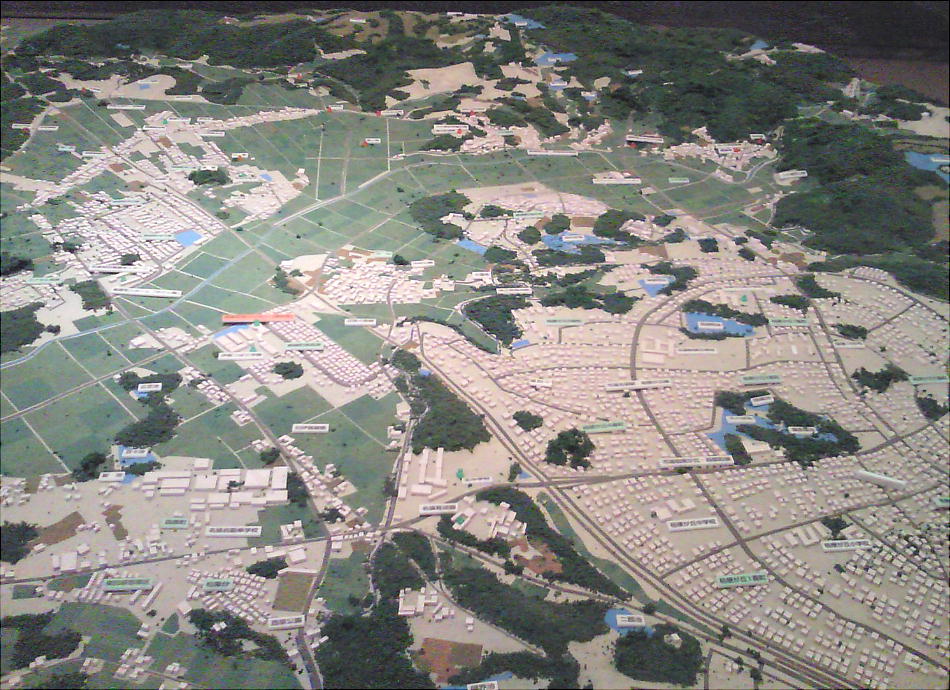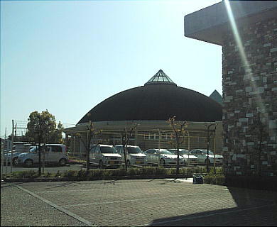 何か変な形のセンターだなと思っていたら、前方後円墳をかたどっているのだった。おもしろい。