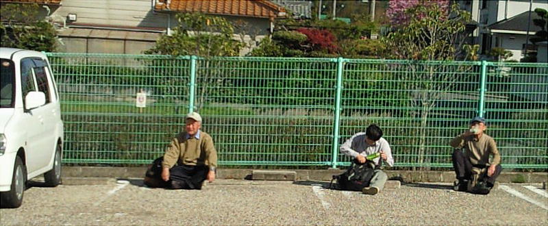 先に出て、駐車場でみんなを待つお三方。