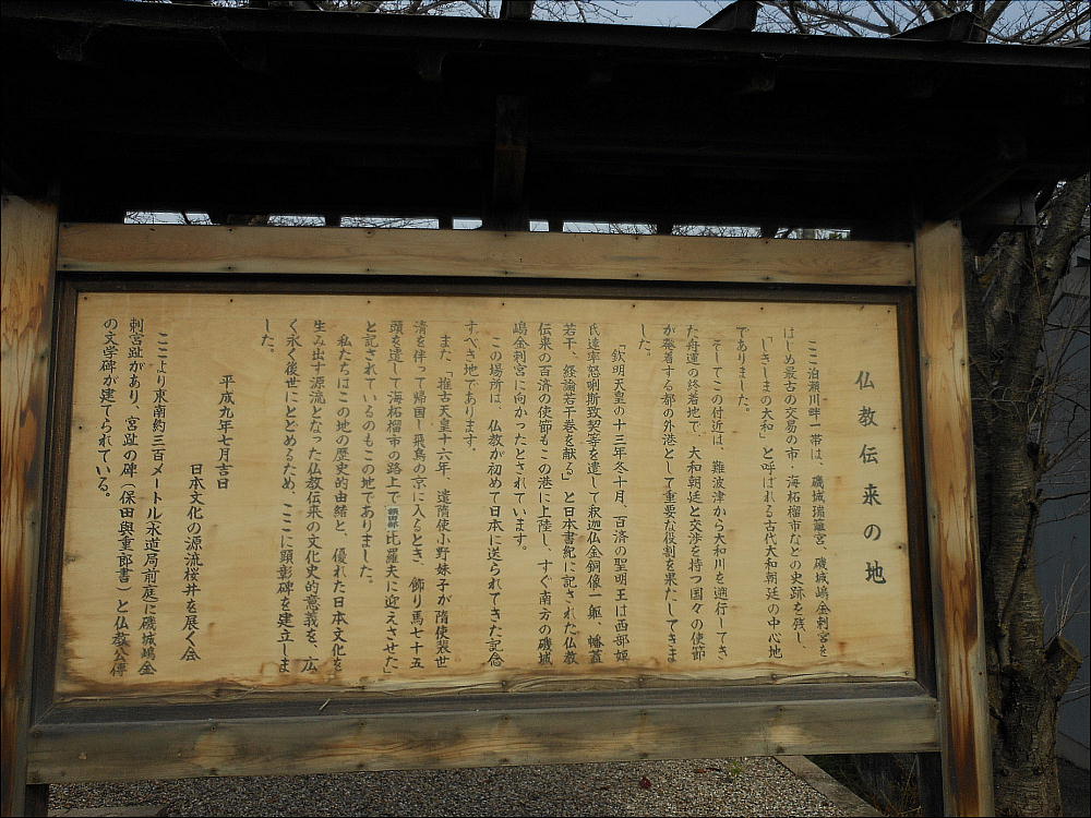 仏教伝来の地碑は日本書紀に、大意「欽明天皇 13年(552年)の冬10月に百済(くだら)の聖明王(せいめいおう)という王様からの