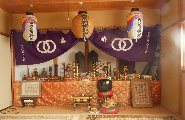 使いがきて、お釈迦様の金銅製仏像、一光三尊の阿弥陀仏、百済大仏、幡蓋(はたきぬがさ)幾つか、經論何巻かを献上した」と記