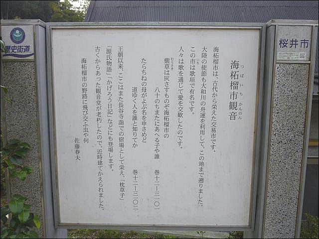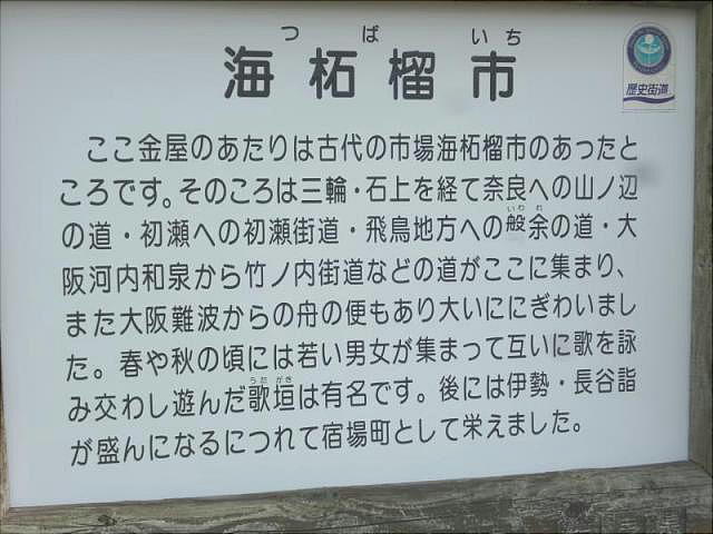 この海柘榴市の地もまた日本書紀に大意「推古天皇 16年(608年)小野妹子が遣隋使、裴世清(はいせいせい)を伴って帰国し、飛