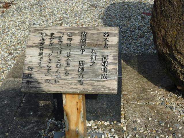 摂社の檜原神社は天照大神をはじめて宮中の外に祀った「倭笠縫邑」の地であると伝えられ、元伊勢の一つとなっている。また、作者