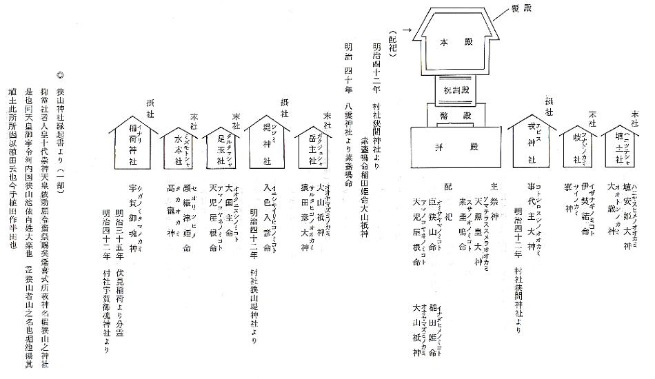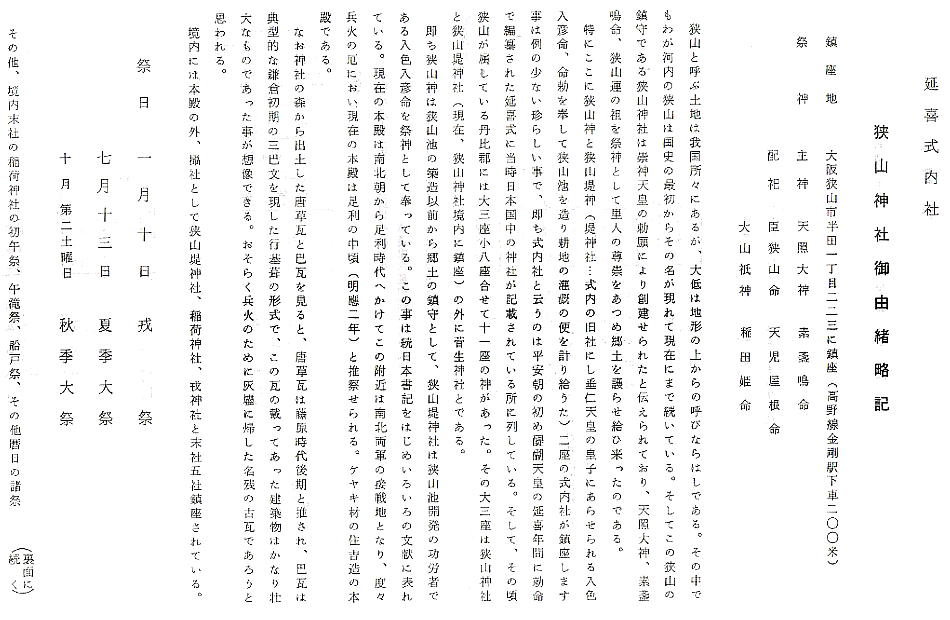 社殿を読むと「狭山神社」は、狭山池開発の功労者で垂仁天皇の皇子、印色入日子命(入色入彦命)を元々「狭山神」として地
