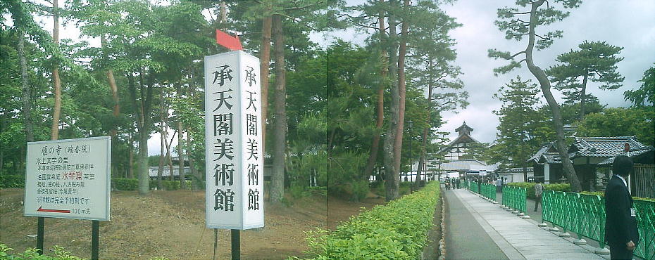 「承天閣美術館」は、設立時から、やがていつか帰ってくる「動植綵絵三十幅」を念頭に設計されたという。正面に「釈迦三尊像」を