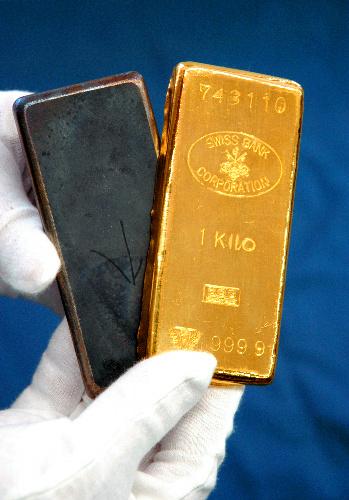 金の延べ板の偽造品。