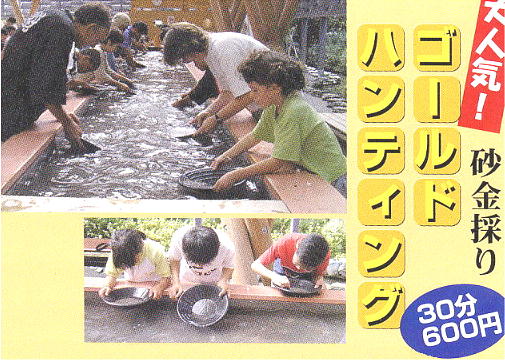 道の駅鯛生金山のイチオシは『砂金採り体験』かもしれない。一攫千金を夢見て大人から子どもまで、だれもが夢中になって