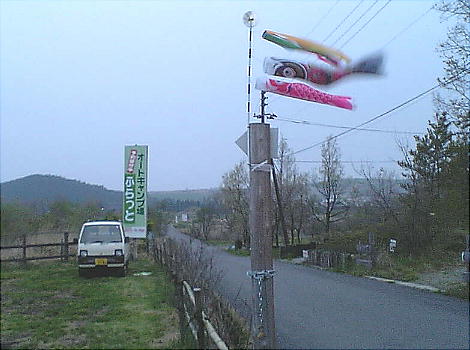をともにし、ふるさとの朝倉へ向かう。上は霧に包まれたグリーンピアの前でポーズするセガレ。