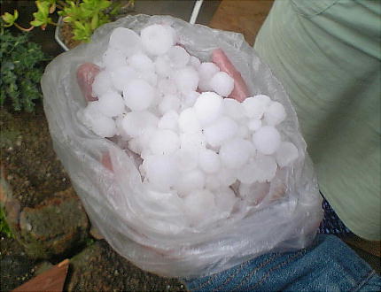 上は3月に実家周辺(朝倉市)に降ったという「雹」(ひょう)。母が冷蔵庫に保存していたもの。直径2,3cmはある。