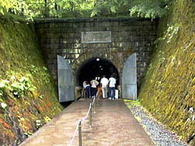 春は鮮やかな新緑、秋は華やかな紅葉に彩られる。坑道入口に立つと、夏は涼しく、冬温かい坑道の空気がふわっと体を包