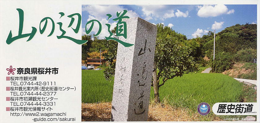 舎道を四季折々の風光を愛でながら辿ります。山辺の道は、正式には北部(奈良〜天理:10km)と南部(天理〜桜井:16km)