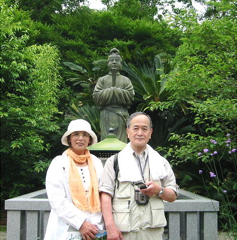 平等寺、聖徳太子像の前で