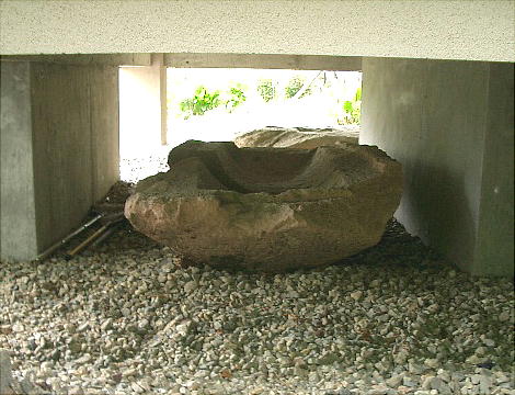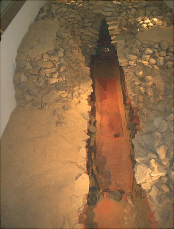 4.一体は石棺の蓋に彫られたものと説明にある。その石棺の身は床下に横たわる。