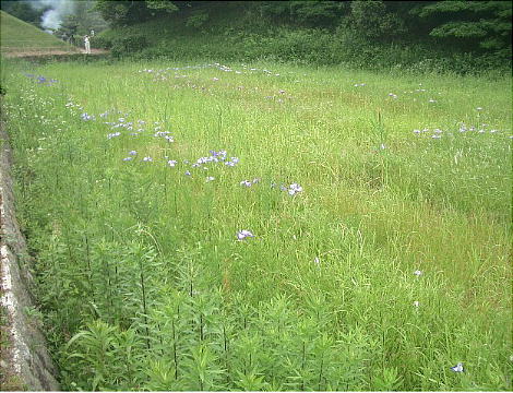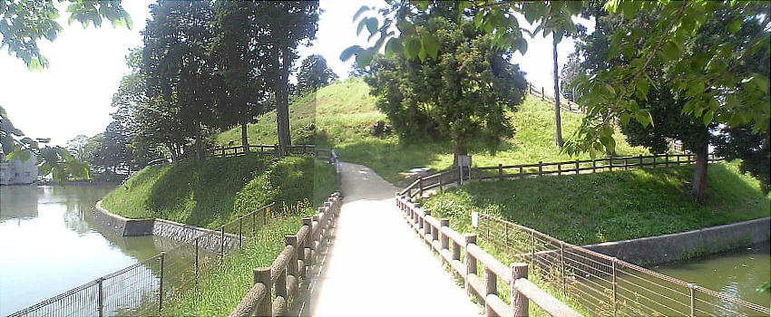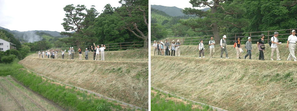 墳へわたる土手が築いてある。