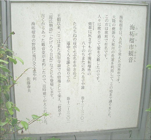 2.平安時代に、京都から長谷観音詣でへの通り道であったので、観音を祭るお堂が建てられたと伝わる。
