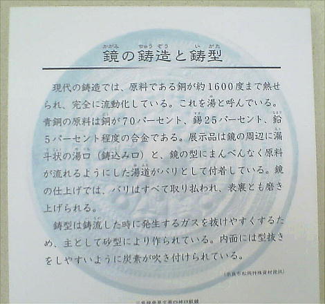 渡すことができるようになっている。2階展示室には発見された三角縁神獣鏡を初めとする鏡、レプリカを作るのに用いた鋳型など