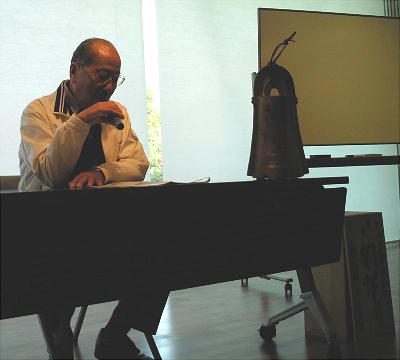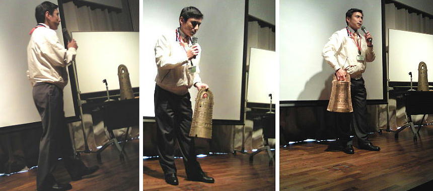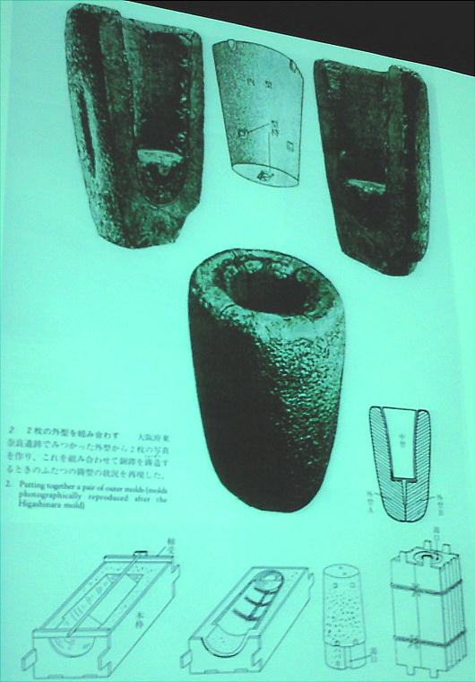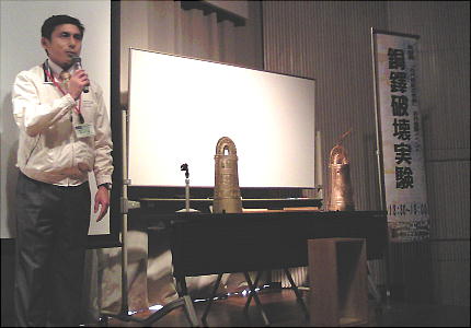 まずは実験の前にレクチャーを。最初は博物館の石野館長から、「銅鐸はどうして破壊されているのか」の解説があって、