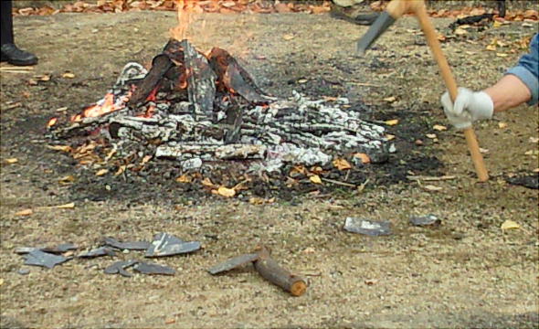ま「鐵は熱いうちに打て」と言うが「青銅器は熱いうちに毀せ」やね。熱して割ればコナゴナに出来ると言うことは証明されたわけだ。