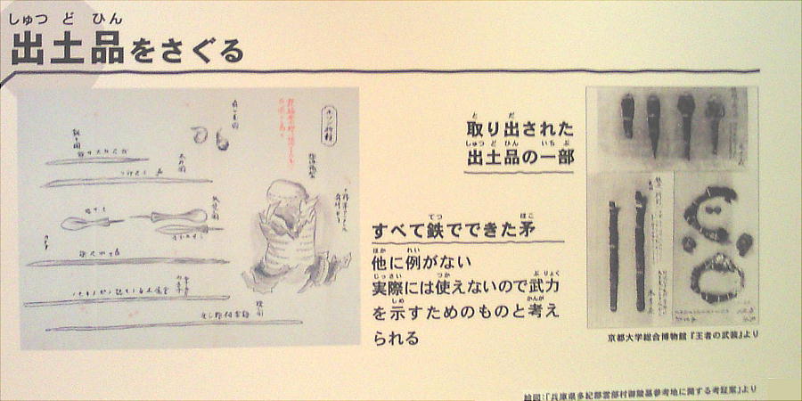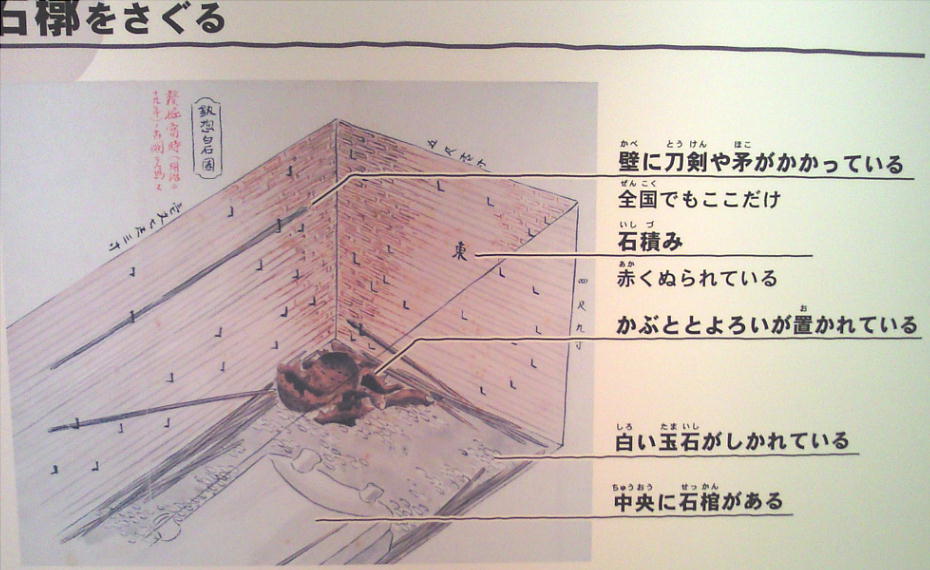 古墳は見たことが無いし、この豪華な副葬品も他に例がない。聞けば、古墳の壁に楔をうって槍や刀を陳列している例は全国でここ