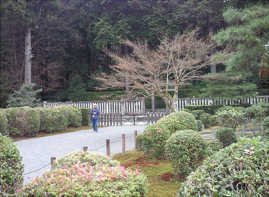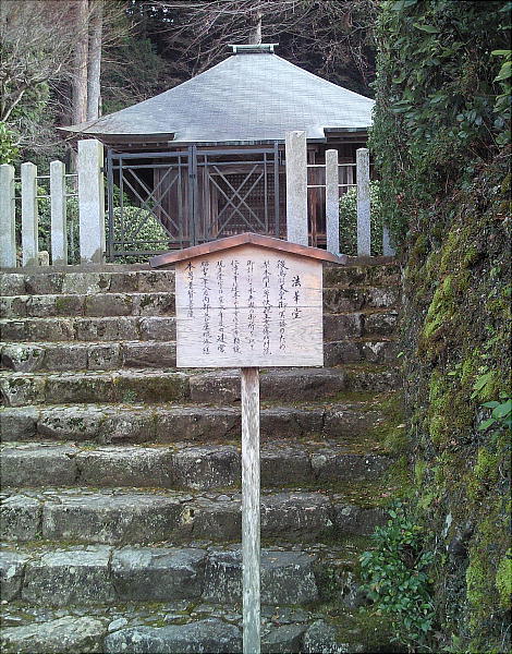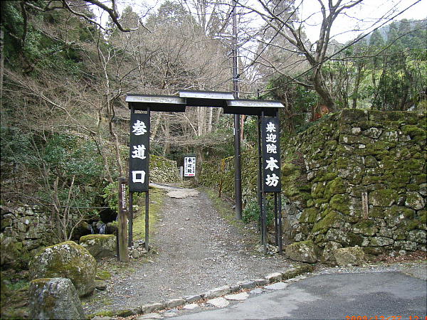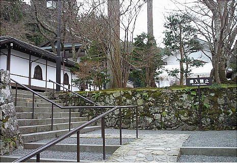 バス停から10分あまり。三千院の石垣、山門を横目で見てまっすぐ行くと突き当たりが「勝林院」で、その手前右手が御陵である。