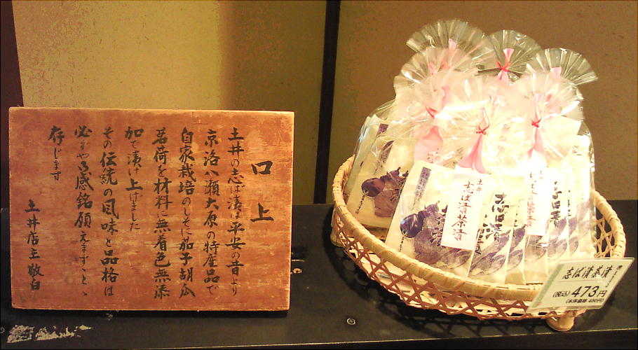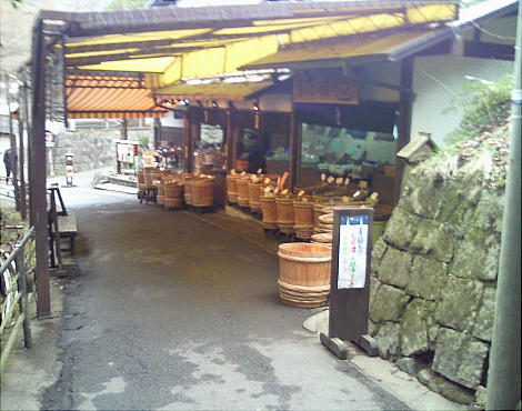 信仰の地・大原ならではのもの。涼しげな霊気を感じながら参道を登り始めた。大原らしく「しば漬け」を商う店が目立つ。アル中の