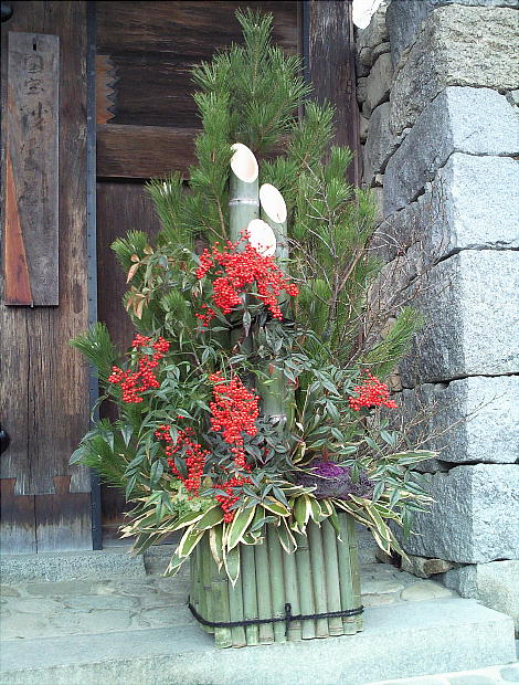 右手の池には黄や緋、白色の鯉が悠々と水面を漂い、苔の生えた岩の上には赤い南天の実がひときわ鮮やかに自己主張をしている。
