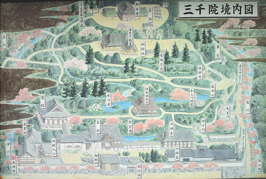 れに翻弄されながらも、京都市中を幾たびか移転、明治維新を経て当地に落ち着いた。三千院内部は、客殿・宸殿・往生極楽院・金色