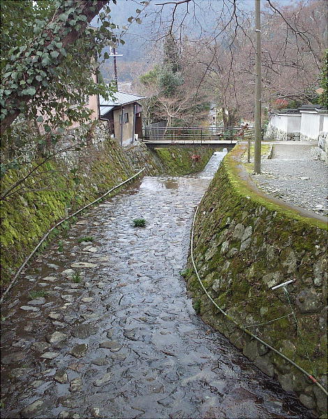上が律川(りつがわ/れつがわ)。三千院を挟んで東側に呂川が、西側に律川がながれる。声明(しょうみょう)の呂曲と律曲に