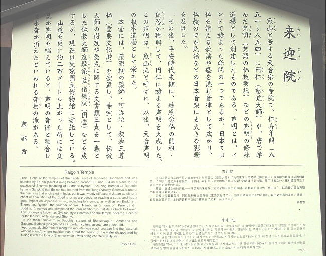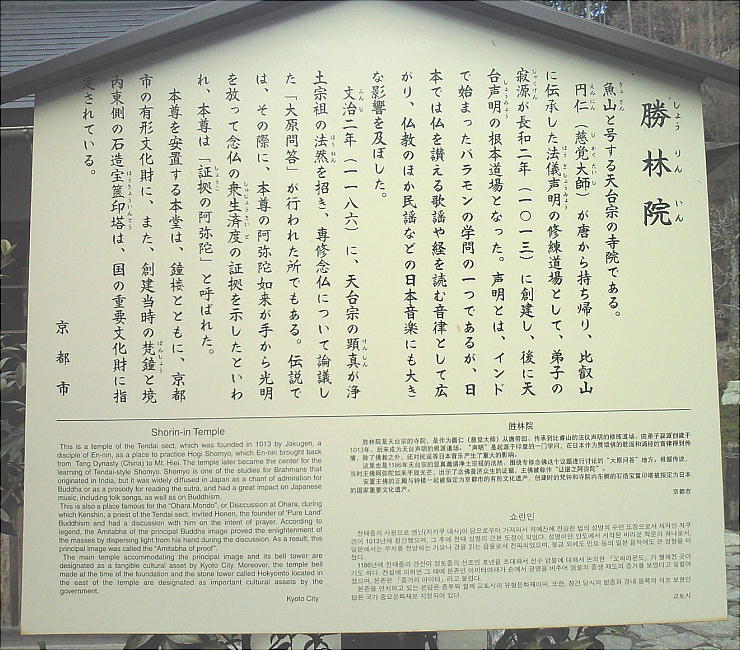 大原は千年の往古から天台声明(ショウミョウと読み仏教音楽のこと)の修行の地として信仰を集めてきた。開基は延暦寺と同じ伝教