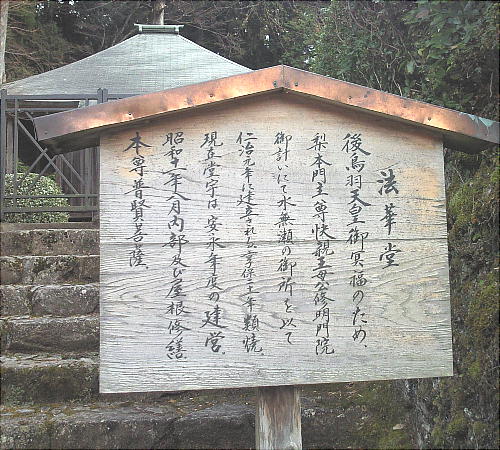 後鳥羽天皇陵は、三千院の北側にあり、順徳天皇陵と並んでいる。併せて大原陵とも呼ばれている。承久の乱に敗れた後鳥羽天皇は