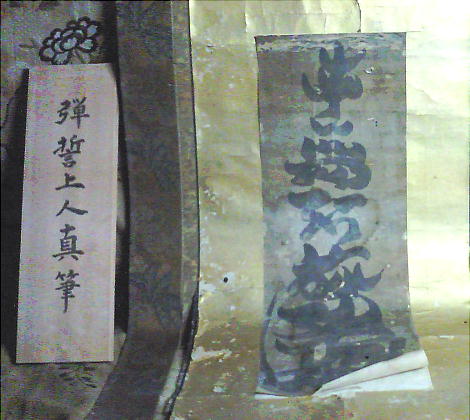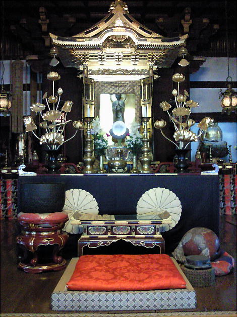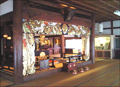 宸殿の端にある不思議な空間である。ガ鳥の「鵞」の字を書いた大きな掛け軸が奥にかかっている。なぜ?と思ったが、これは天台宗