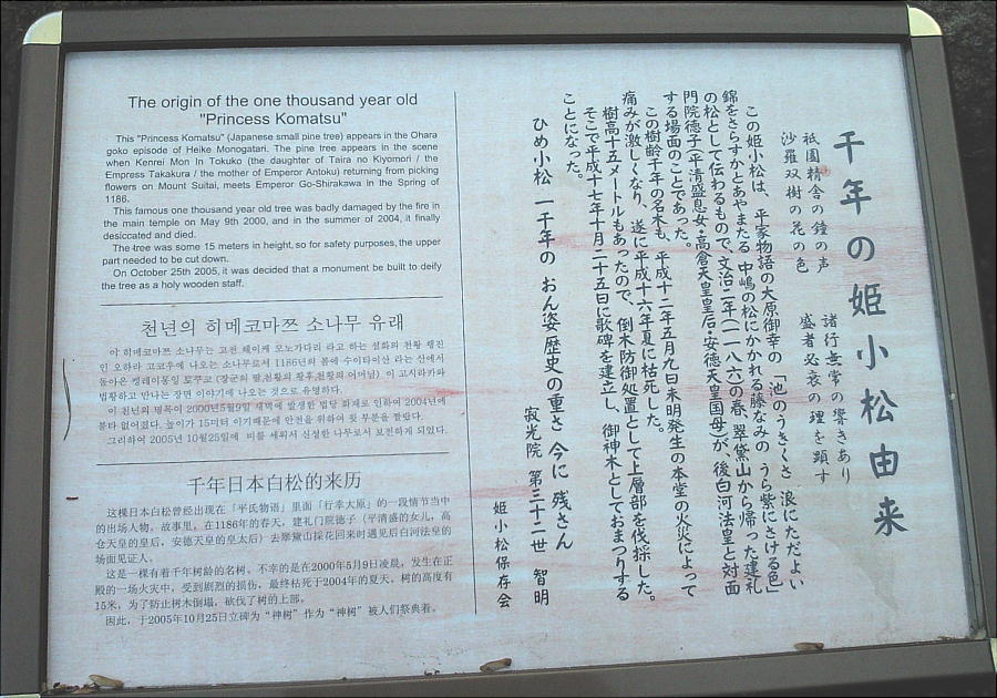 ような山深い山背の寒村まで出向くような状況には無かったと思うのだが、ある学者は、大原は小野妹子の領地だったので、充分考え