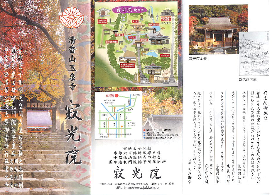 交 通 JR京都駅→京都バス大原行きで62分、終点下車、徒歩10分。