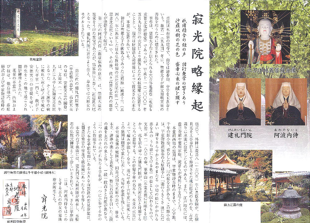 庵を結び、平家の菩提を弔うことに生涯を捧げた。後白河法皇が大原を訪れる話は平家物語の「灌頂巻・大原御幸の段」で有名だが、
