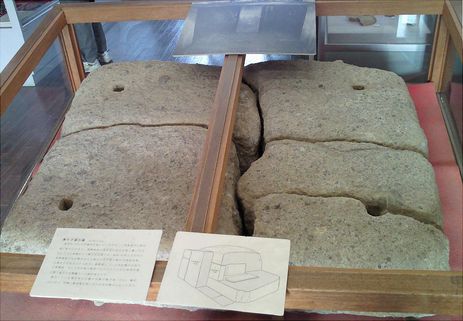 ★棺:確定はされていないが明日香村教育委員会の調査結果によると石室の西側と奥室の床から家型石棺の破片が出土しており石材