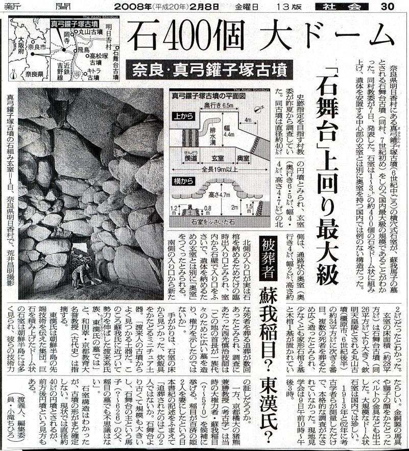 (*) 朝日新聞では、猪熊教授が蘇我稲目の墓説を出している。明日香村教育委員会では、「東漢氏は蘇我氏に従属していたというイメ