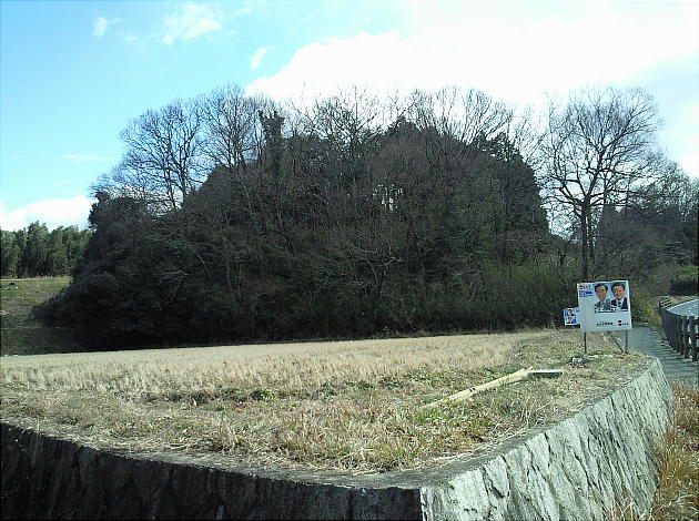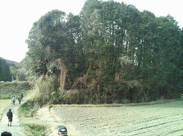 て丘陵を下ってゆくと、竹林を経て左手に小高い森が見えてくる。そこが鑵子塚古墳である。尾根端部の瘤状の地形を利用して作ら