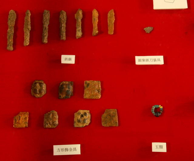 玉類、鉄鏃、鉄釘、凝灰岩片、等(太字は今回の出土品)