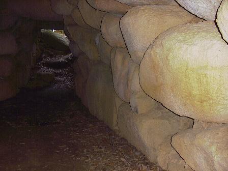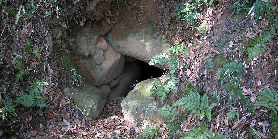 構造の石室がある。道の途中に小さな石室への入口が口を開けている。かがみ込んで奥の除くと、不思議なことに奥の方が明るい。