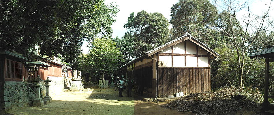 拝殿は無く、一段高いところに、瑞垣。中に本殿。創祀年代は不詳。一説に、仲哀天皇の御代、櫛玉彦命の後裔・荒木命に巨勢の地