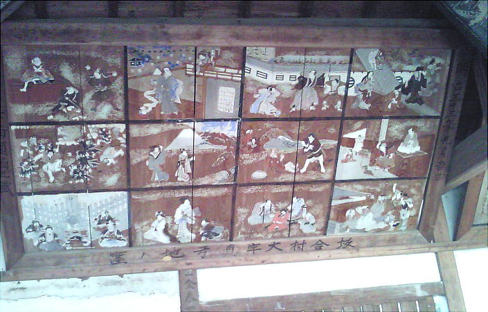 本殿前の拝殿に掲げてあった絵馬。なにかの物語の絵巻のようだ。