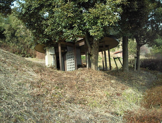 史跡公園の中の公衆トイレ。「地の窪」という 真弓集落