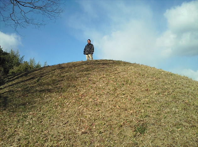 墳頂に立つ大隈君。サラリーマン生活ではとうとう頂点には立てなかったねぇ、お互い。