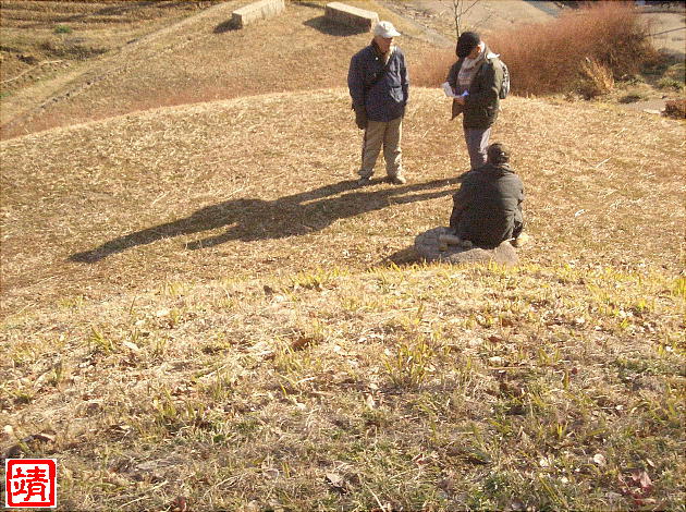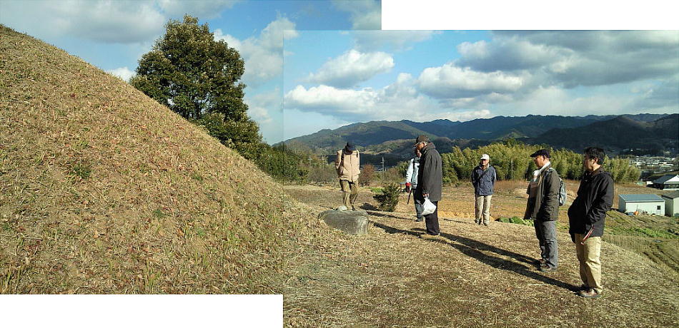 (1977)の墳丘北側の発掘調査の結果円墳と判断されたが、西側の民家が立ち退いた跡地約54平米を今回発掘し、墳丘と石敷きの
